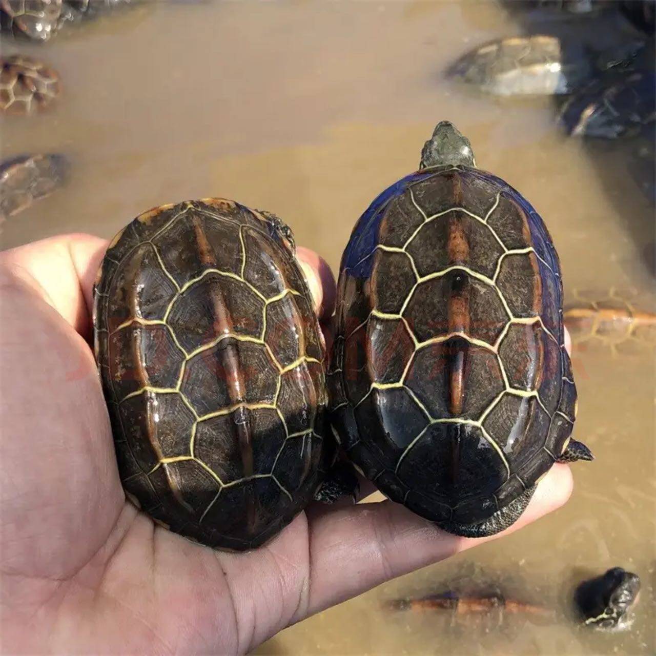 纯种外塘中华草龟,又称苏北金线龟,是备受青睐的观赏宠物龟。其背甲呈深褐色或墨绿色,腹甲具明显金色放射状纹路,尤以苏北产种群品相出众,故得名“金线龟”。外塘自然繁育,体质强健,适应力强,适合水陆两栖环境饲养。幼龟阶段活泼好动,成龟雄性可逐渐墨化,成为通体乌黑的“墨龟”,极具观赏价值。作为网红龟苗,它不仅寓意长寿吉祥,还能为家居增添自然生机。饲养简单,食性杂,是新手和资深龟友的理想选择,兼具文化韵味与生态趣味。