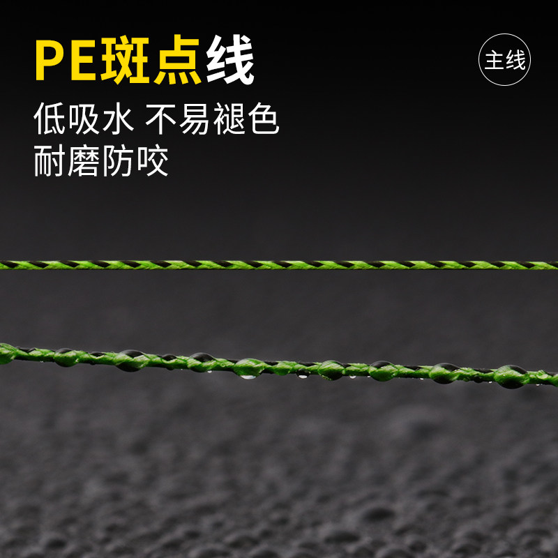 老刀成品大物主线黑坑8编PE斑点隐形大力马线组套装,专为黑坑巨物垂钓设计。采用8股高强度PE纤维编织而成,具备超强拉力和耐磨性,结节强度高,有效应对大鱼冲击。线体呈现斑点迷彩设计,近水隐形,降低鱼儿警惕性,提升中鱼率。搭配精密导环与顺滑涂层,出线流畅,抛投更远。线组套装包含主线、前导线及连接配件,即装即用,方便快捷。适用于淡水大型鱼类如青鱼、草鱼、鲢鳙等,是黑坑、水库作钓的得力装备,兼顾强度与隐蔽性,助力钓友轻松搏大物。