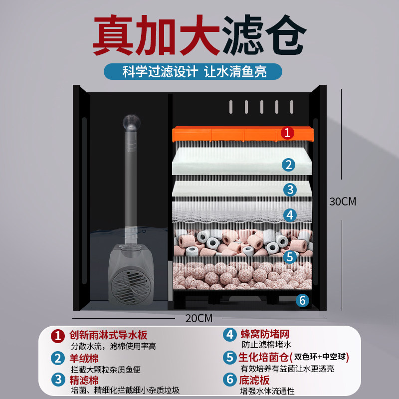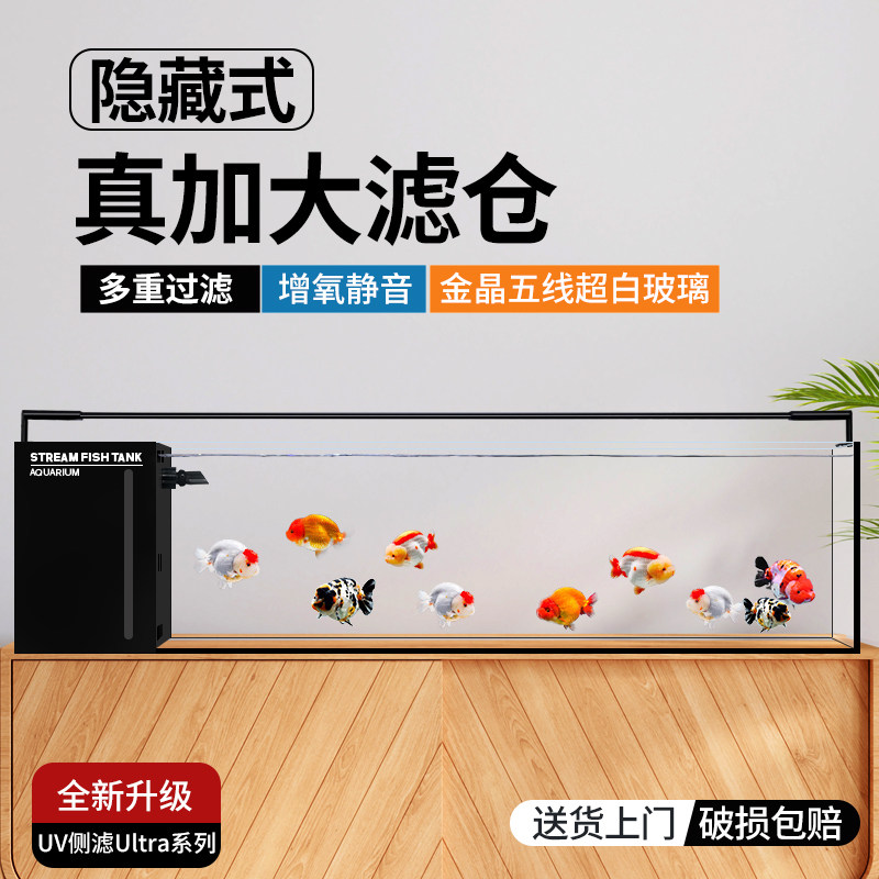 淘宝研鱼社新品Ultra系列一体式UV侧滤超白鱼缸溪流缸兰寿金鱼超白缸