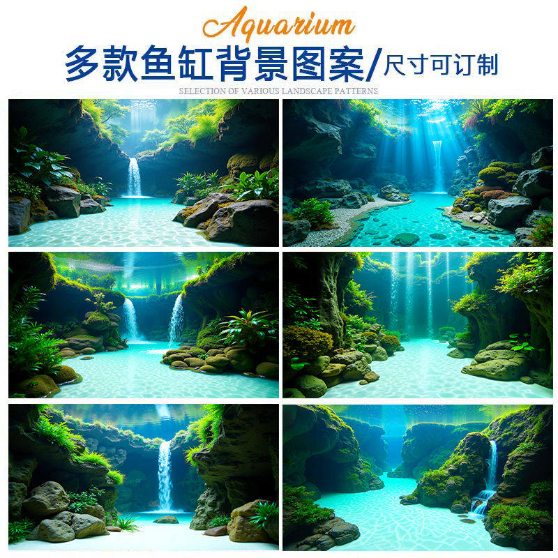 淘弥禾堂鱼缸背景纸高清3d立体壁纸定制溪流缸超白鱼缸贴纸鱼缸挂画
