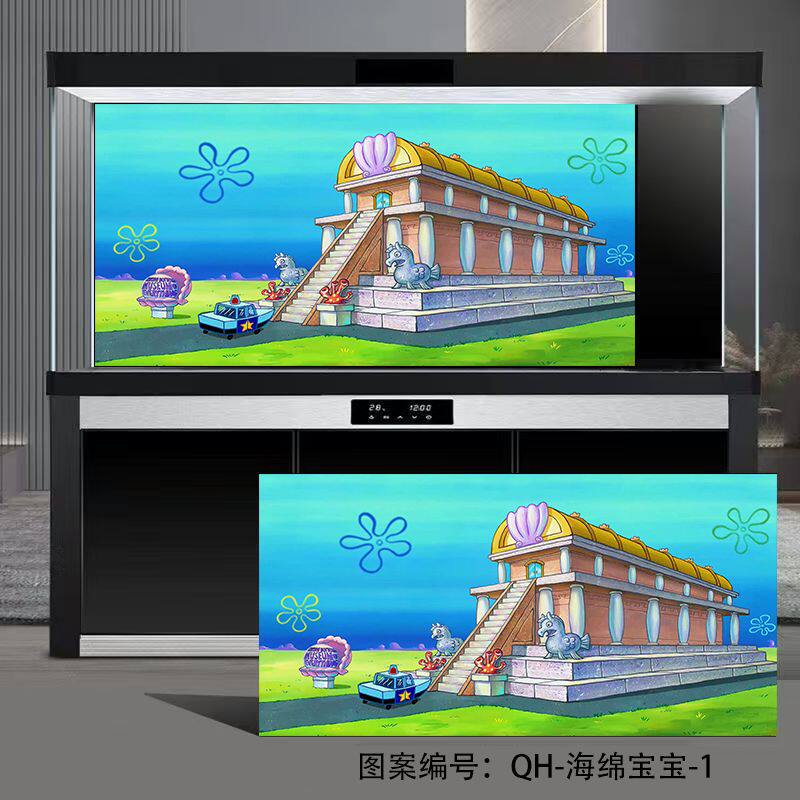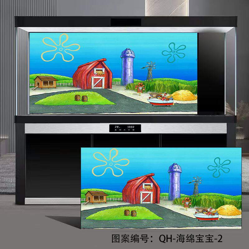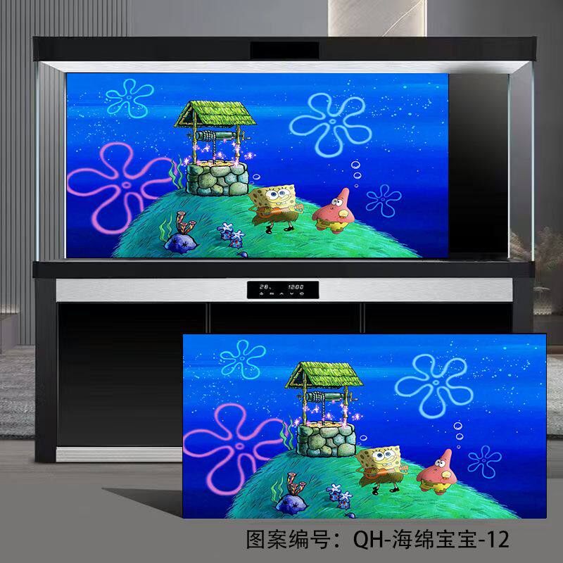 淘宝鱼缸背景纸全套海绵宝宝图案定制3d立体高清比奇堡卡通背景画造景