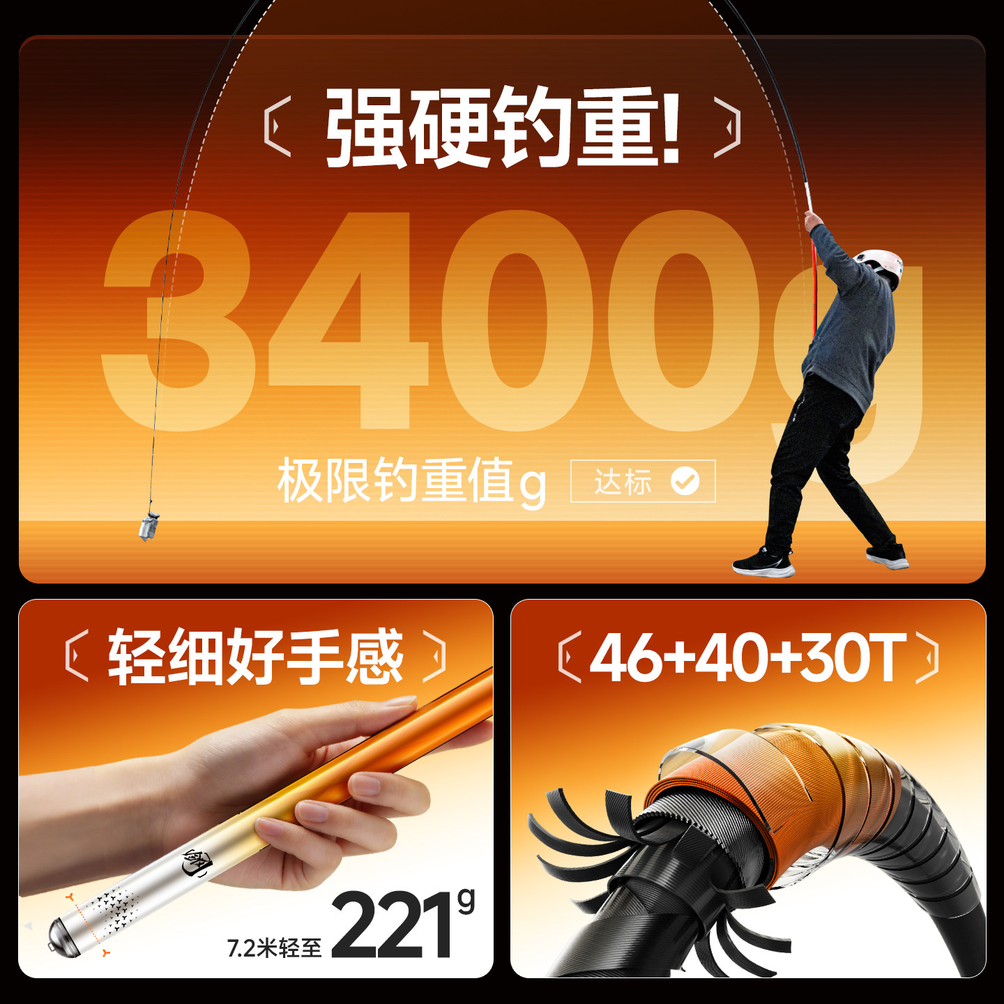 猛将鲢刀二代青鱼竿6H19调超轻超硬钓鱼竿手竿台钓竿野钓竿钓鱼杆