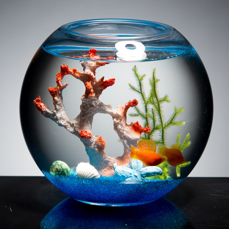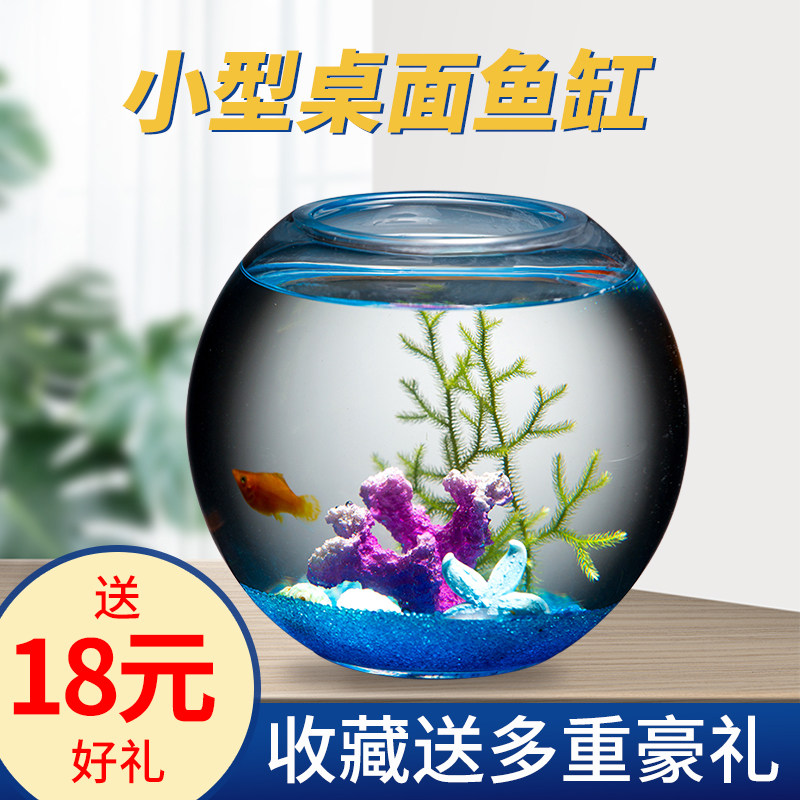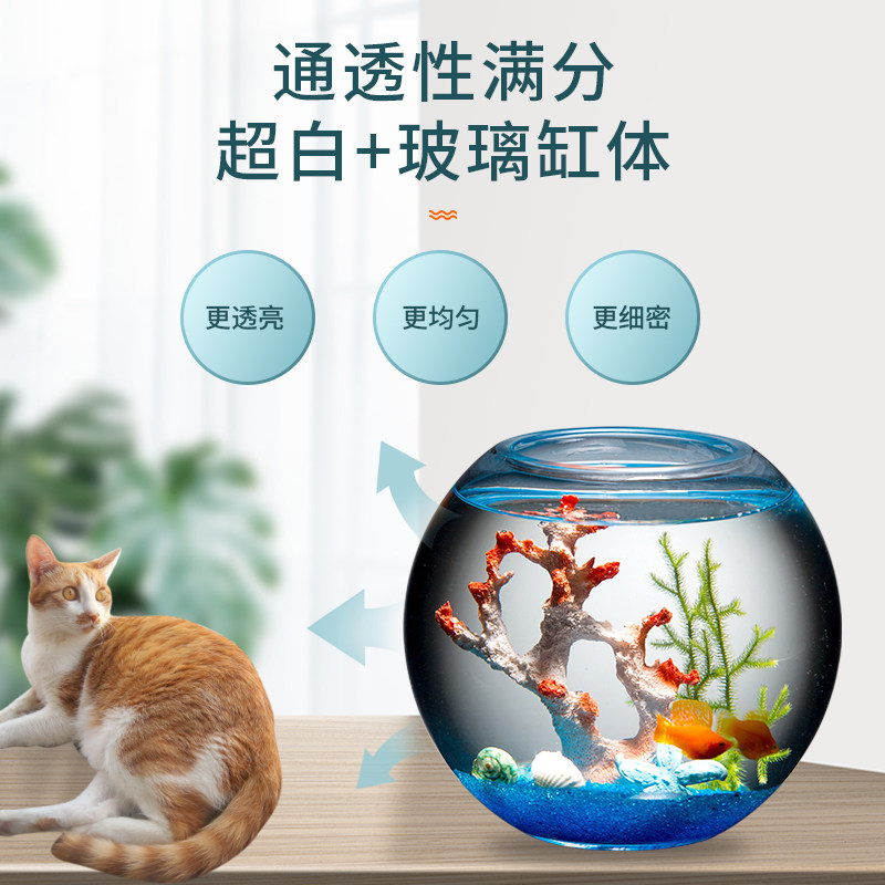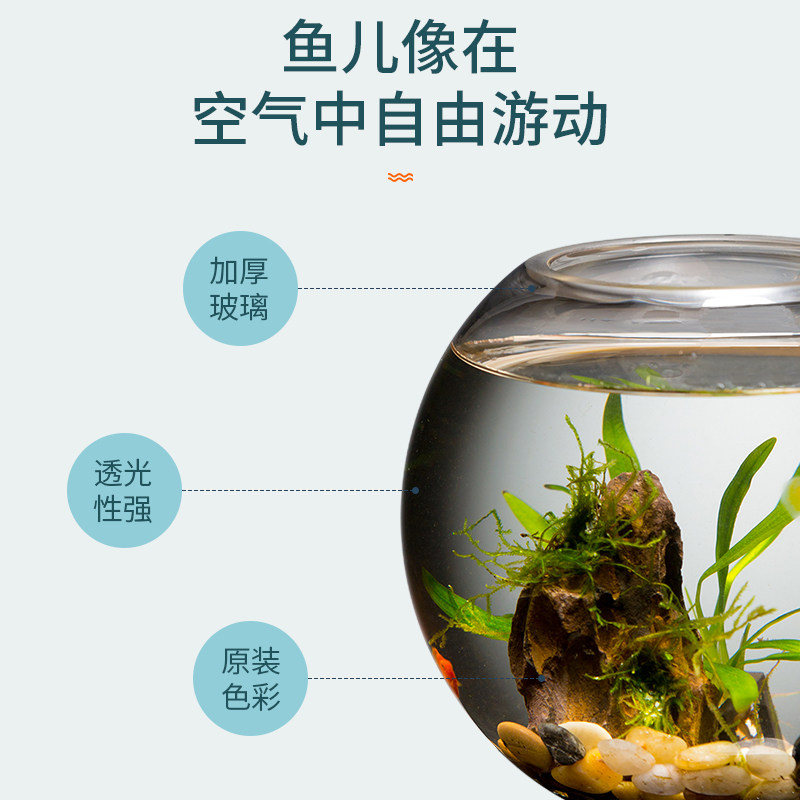 天猫玻璃鱼缸客厅小型圆形创意桌面加厚金鱼缸生态造景家用懒人斗鱼缸