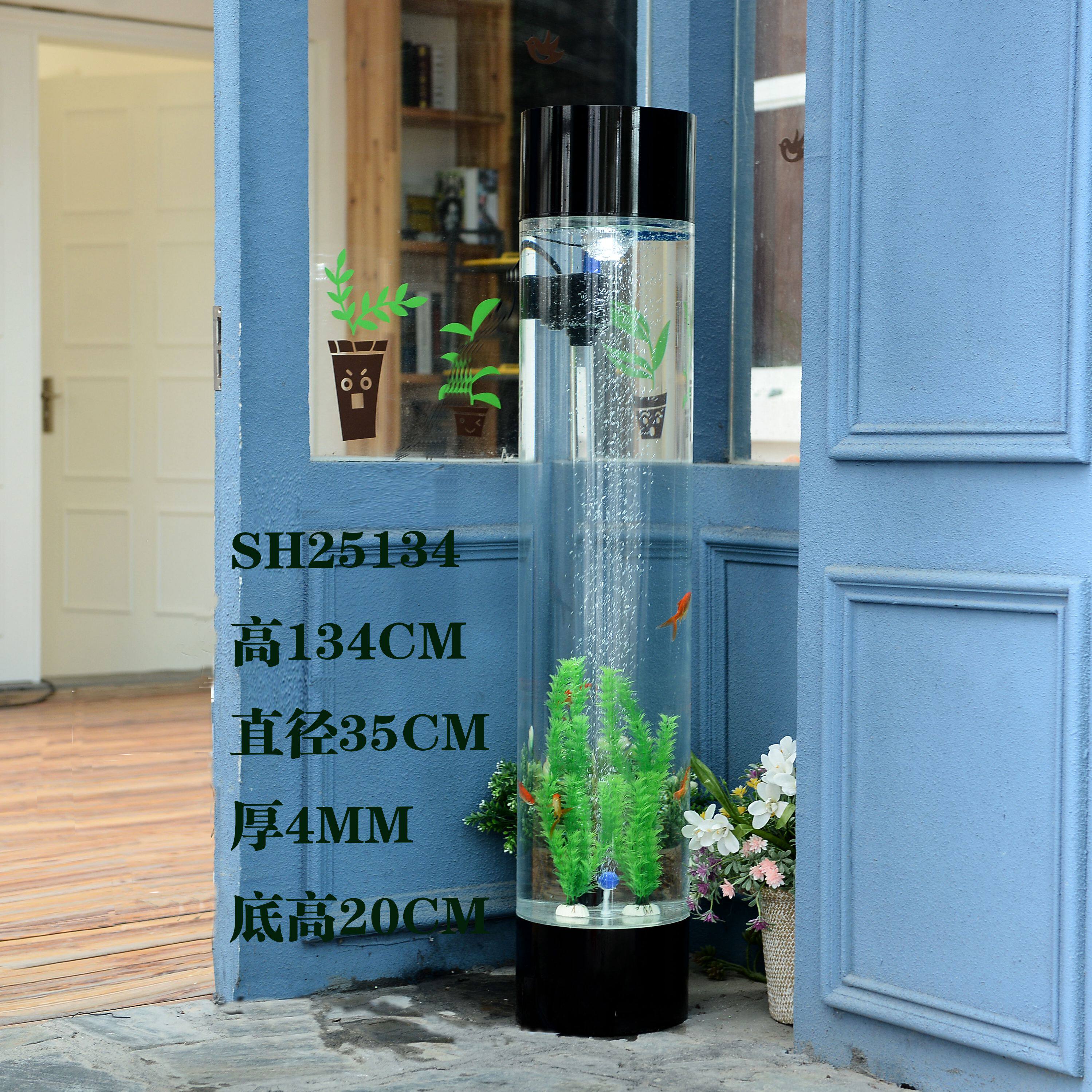淘宝免换水亚克力圆柱水族箱 增氧过滤懒人鱼缸 酒店客厅落地鱼缸2米