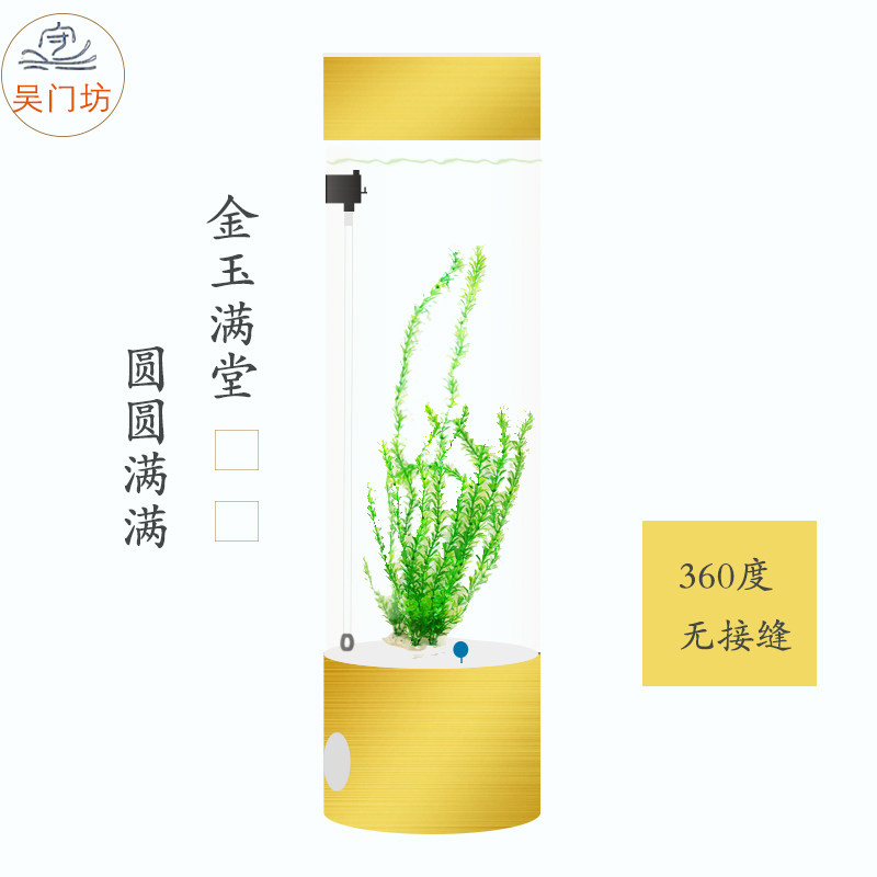 天金鱼缸 玻璃 水族箱小型创意生态圆形 圆柱大号乌龟缸 造景配饰缸