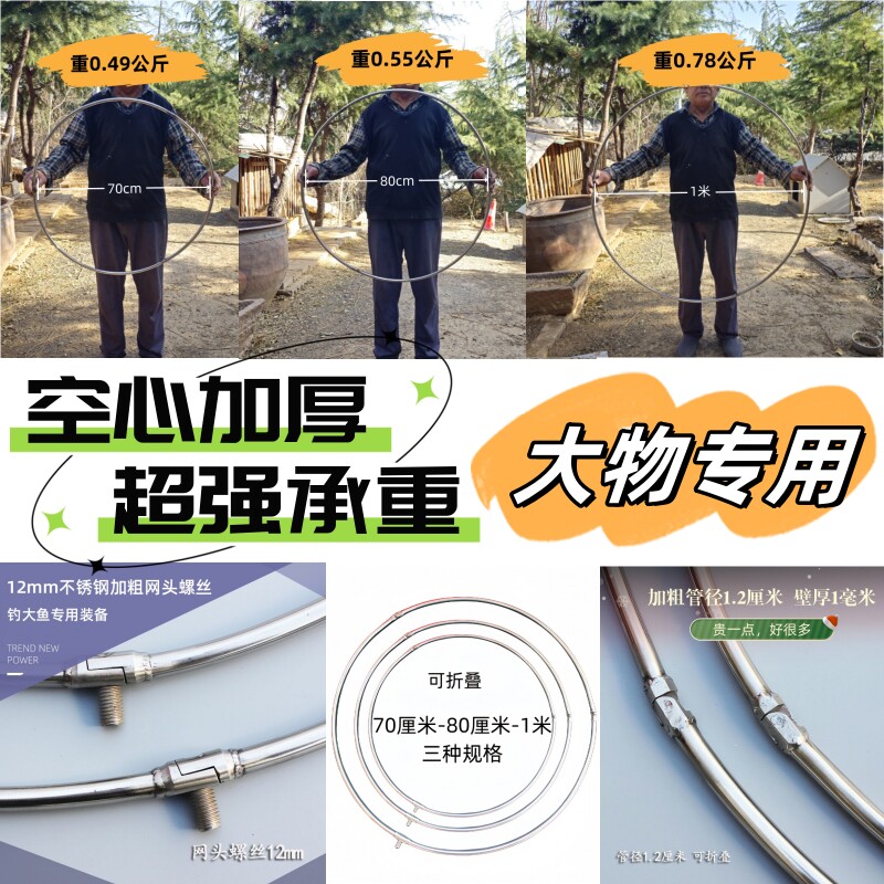 淘宝钓大鱼专用特大抄鱼网 超大直径不锈钢空心加强加厚加粗伸缩折叠