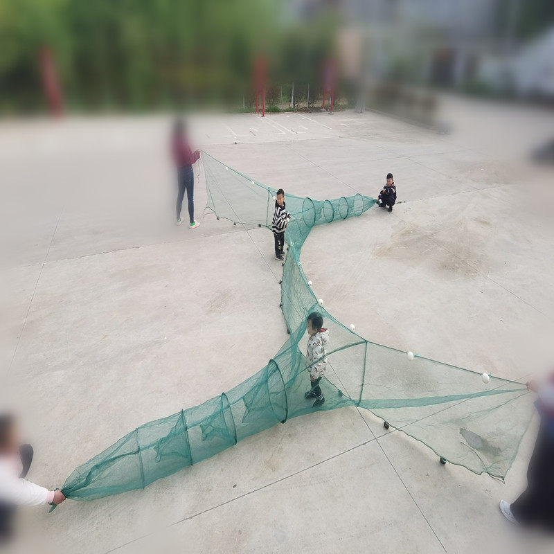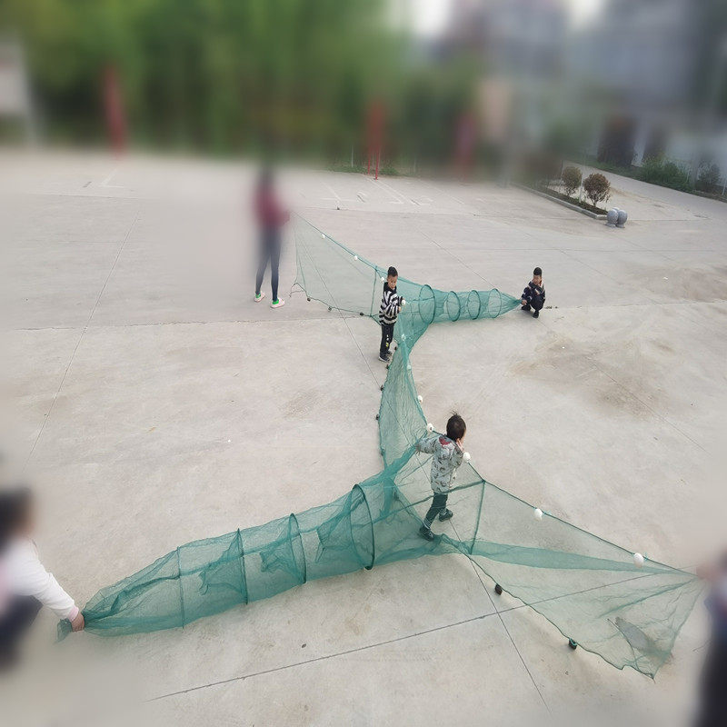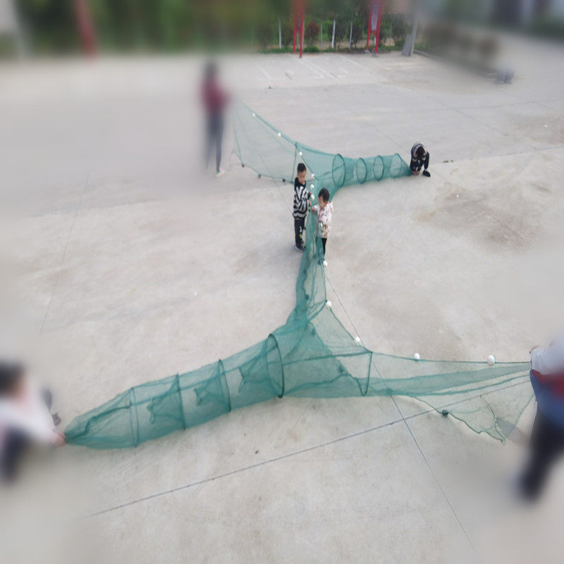 大入口双向连体拦网,又称虎口网或挡河鱼网,是一种高效河道捕捞工具。其设计独特,采用双向入口结构,鱼虾顺流进入后难以逃脱,尤其适合拦截小型鱼类和虾类。网体由高强度聚乙烯材料制成,耐腐蚀、抗拉扯,可长期置于河流、沟渠中使用。配合虾笼或围网系统,能实现定向诱捕,提升捕捞效率。该网具操作简便,布设灵活,既可用于临时捕捞,也可固定安装于特定水域,广泛应用于淡水养殖、生态采样及资源管理等领域,是兼顾实用性与环保性的现代渔具代表。