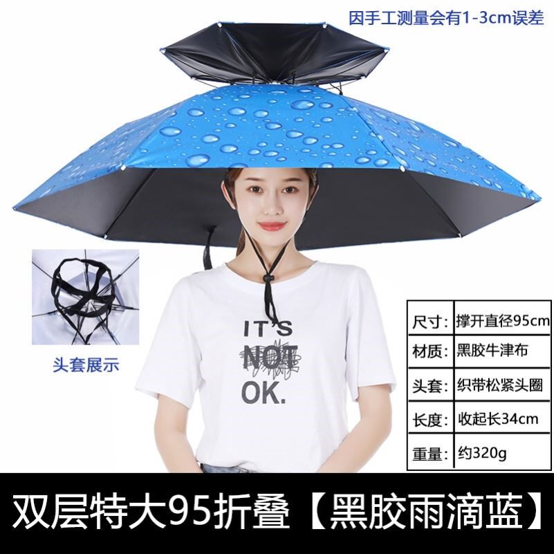 淘伞帽头戴伞钓鱼伞帽双层头戴式遮阳雨伞户外垂钓防晒头顶雨伞帽子