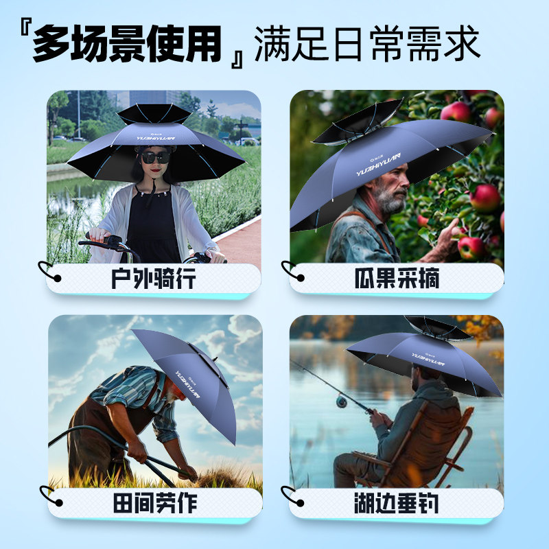 天猫渔之源斗笠伞帽头戴式2025新款钓鱼专用伞遮阳伞帽头顶头戴式伞帽
