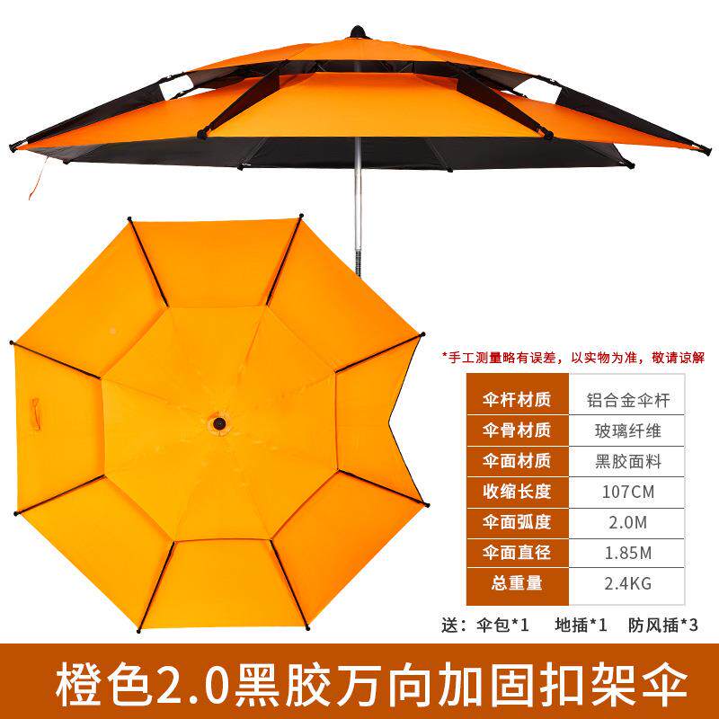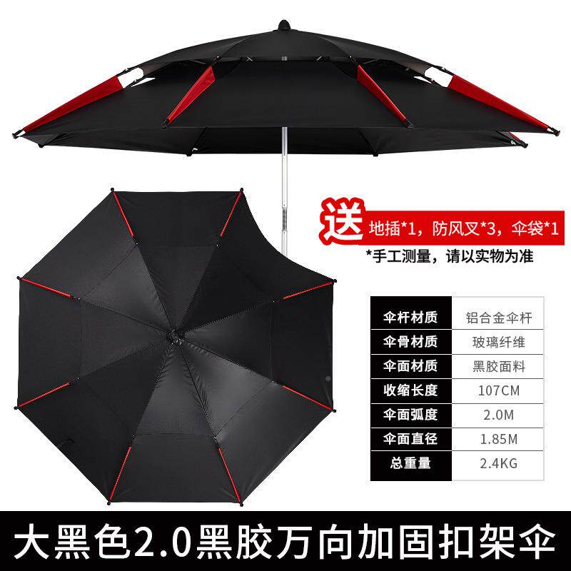 淘短节万向双层钓鱼伞大钓伞台钓渔伞三折叠防风晒雨伞遮阳加厚地插