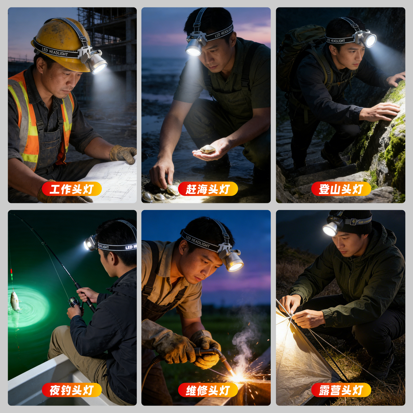 淘led可充电泛光工作头灯强光超亮户外散光头戴式维修大光斑钓鱼灯