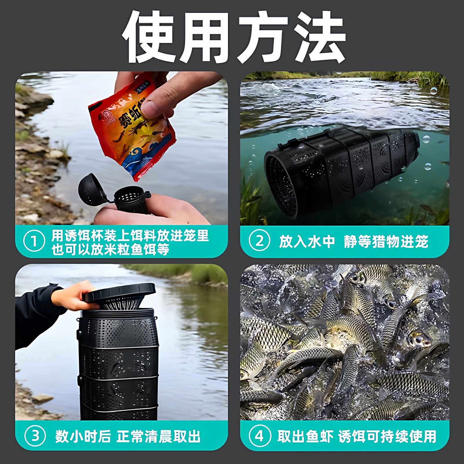 虾笼是一种专为捕捉河虾、龙虾、黄鳝、螃蟹、泥鳅等淡水水产设计的捕鱼神器。采用优质尼龙或PE材料制成,结构坚固耐用,网眼细密,确保目标水产只进不出。其独特的漏斗形入口设计,引导鱼虾顺利进入笼内却无法逃脱,极大提高了捕捞效率。虾笼轻便易携,可沉入水底或固定于水流处,适用于溪流、池塘、稻田等多种水域。无需电力,环保安全,是传统捕捞与现代工艺结合的实用工具。无论是家庭垂钓还是小规模捕捞,虾笼都能高效作业,收获满满,是水产爱好者和渔民的得力助手。