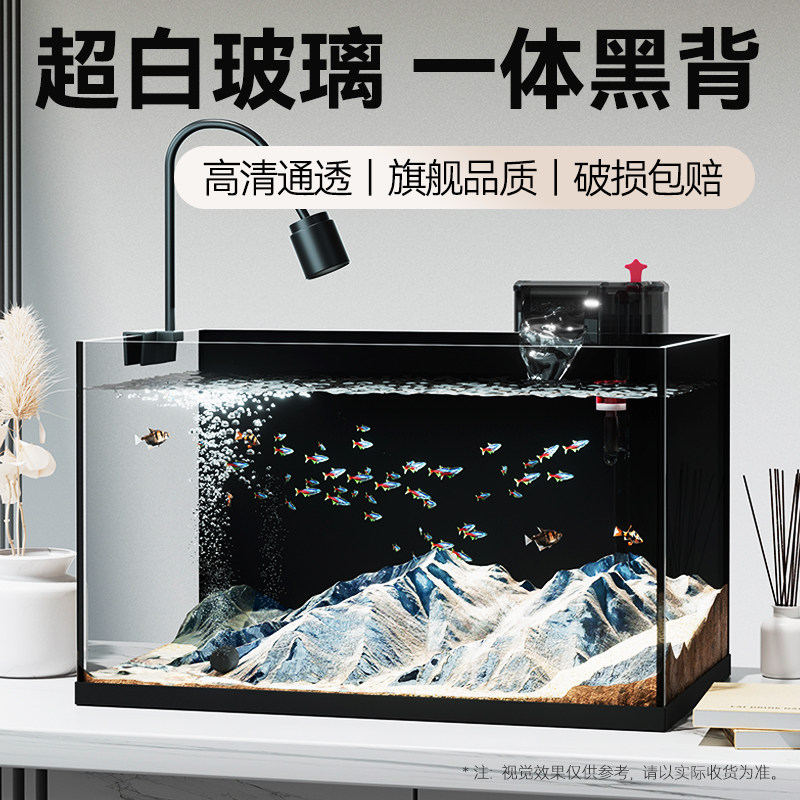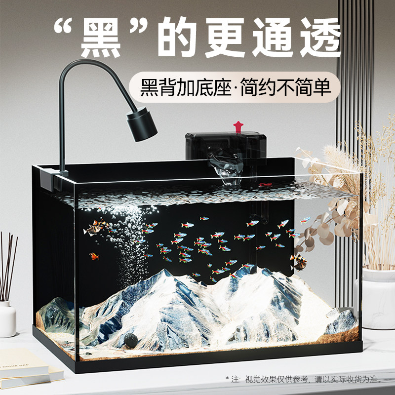 天猫金晶超白玻璃鱼缸黑胶黑背客厅小型办公室桌面鱼缸家用造景南美缸