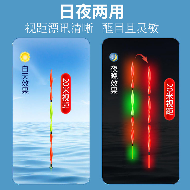 淘宝螺旋加粗硬尾夜光漂日夜两用咬钩变色电子漂超亮醒目浮漂鲫鲤鱼漂