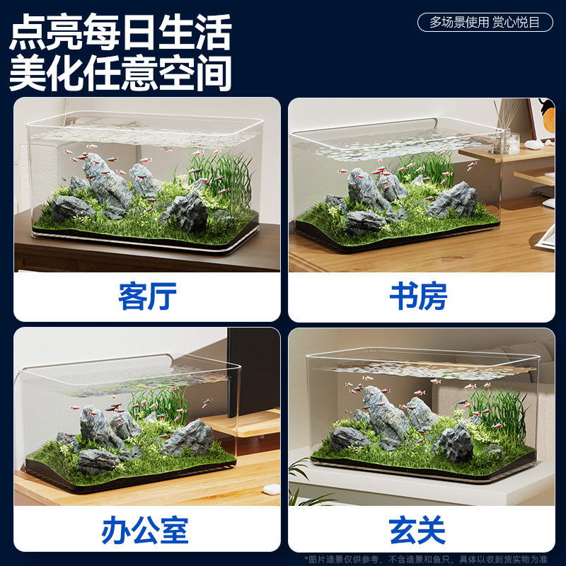plus桌面超白鱼缸小型家用办公室造景全套自循环免换水生态水草缸