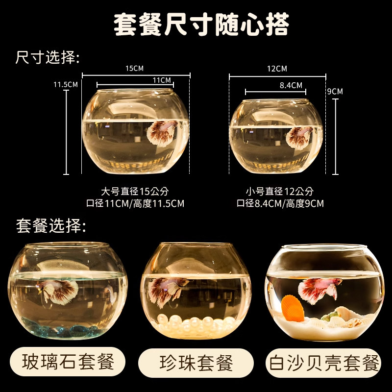 天猫鱼缸圆形透明玻璃客厅家用小型金鱼斗鱼乌龟缸艺术迷你办公室桌面