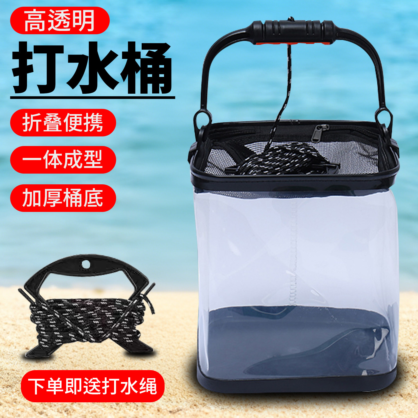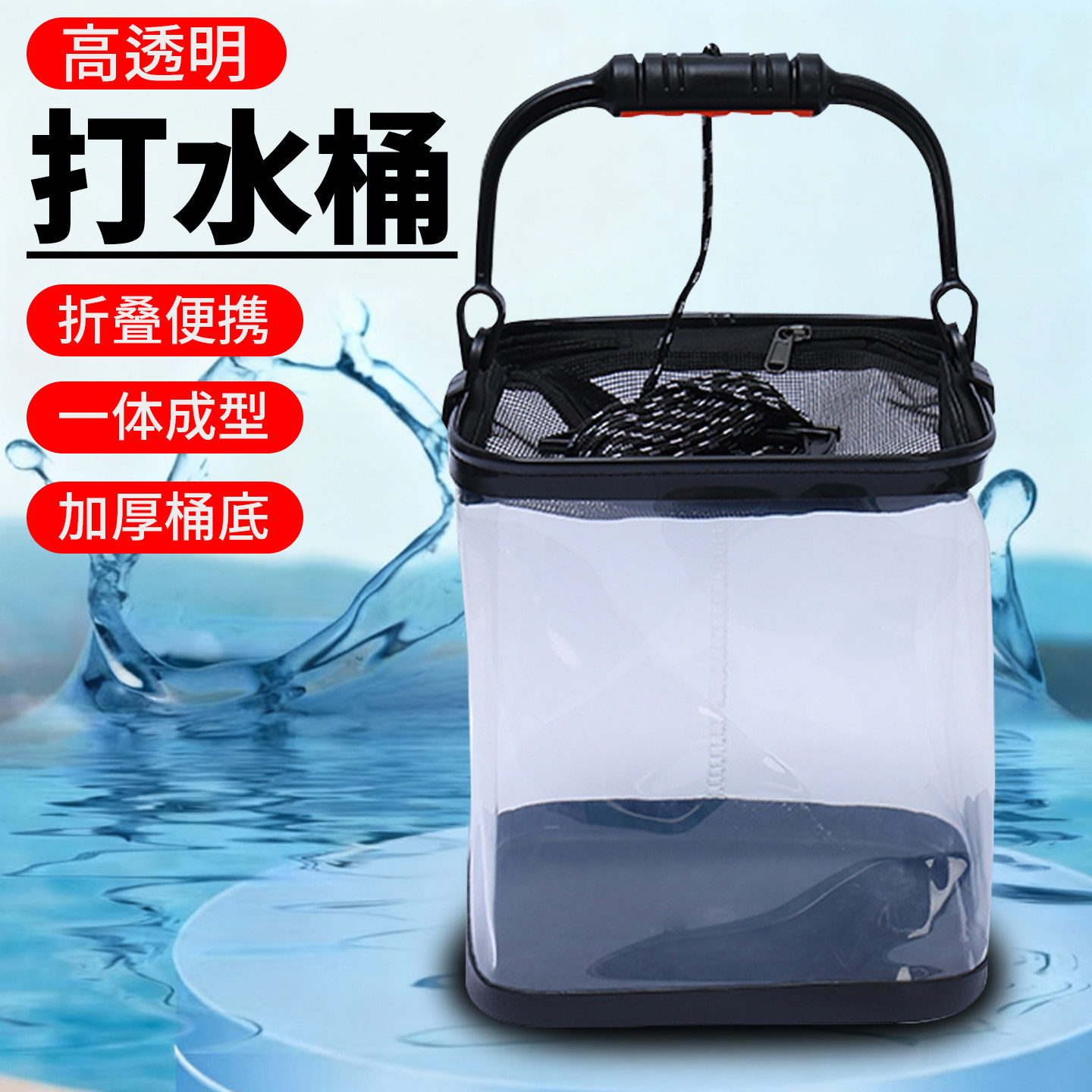 天猫溪流鱼桶储鱼桶打水桶加厚透明折叠溪流鱼护桶便携收纳鱼桶渔具