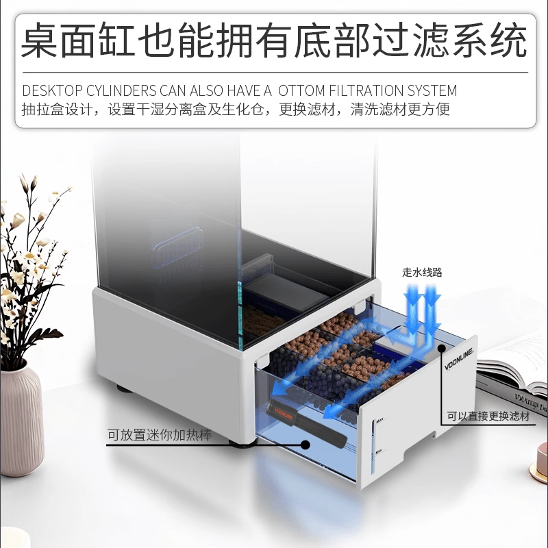 天猫沃韦朗桌面底滤鱼缸水草缸客厅家用小型玻璃小鱼缸生态缸底滤过滤