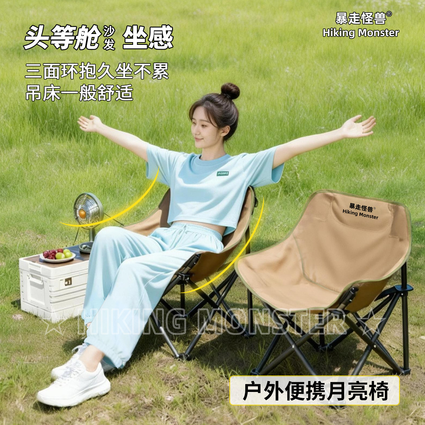 淘宝暴走怪兽月亮椅户外钓鱼野餐露营午休宿舍办工考研小椅子便携式凳