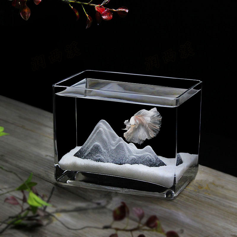 淘宝奇艺玻璃鱼缸一体缸迷你长方形鱼缸一次成型桌面小鱼缸斗鱼缸加厚