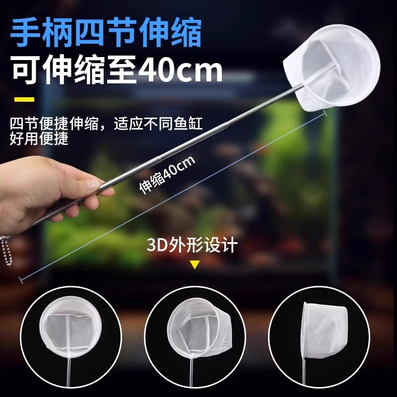 虾捞3d鱼捞伸缩不锈钢渔网鱼网长柄网漏圆形方形伸缩网兜水族用品