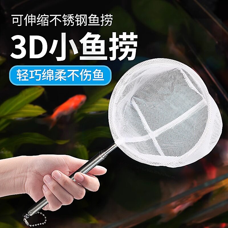 鱼捞捞鱼网鱼缸网捞小鱼小号3D渔捞兜密网鱼网鱼捞可伸缩