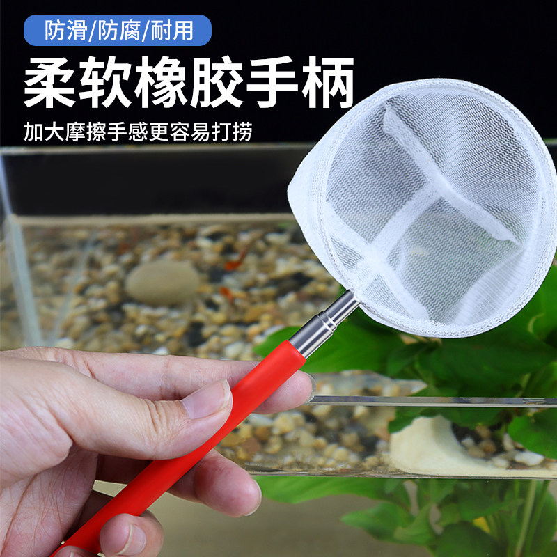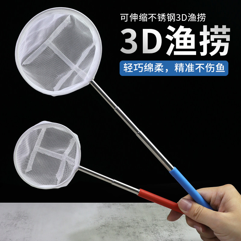 淘虾捞3d鱼捞伸缩不锈钢渔网鱼网长柄网漏圆形方形伸缩网兜水族用品