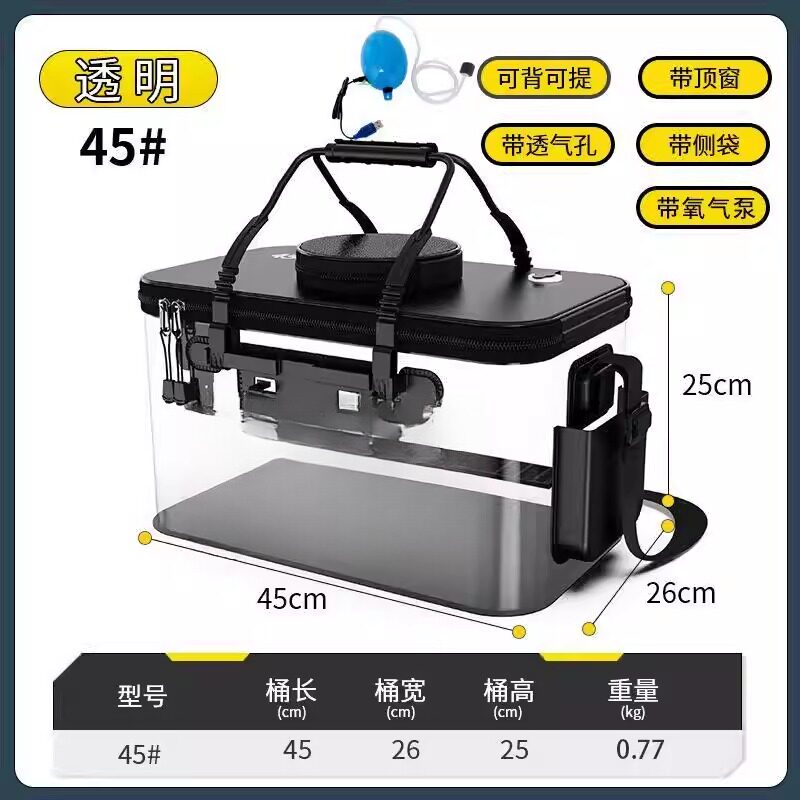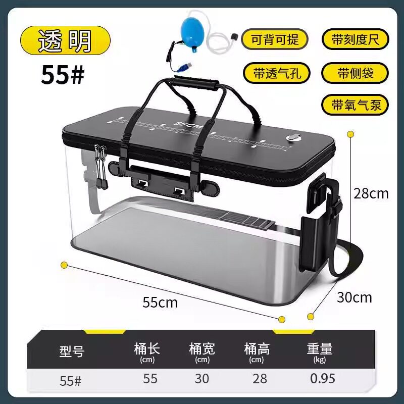 活鱼水箱密封车载钓鱼装备长方形透明装鱼运输箱渔具收纳箱钓箱