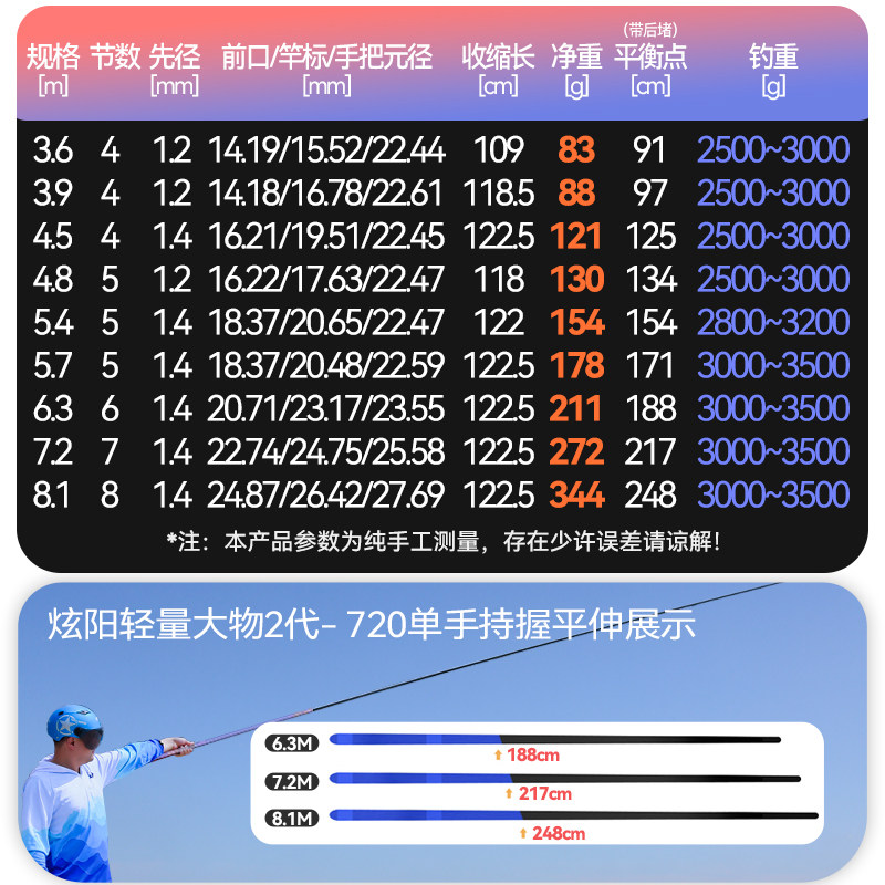 沃鼎王朝汉极轻大物竿鱼竿手竿轻量大物竿台钓鱼杆巨物鲢鳙钓鱼竿