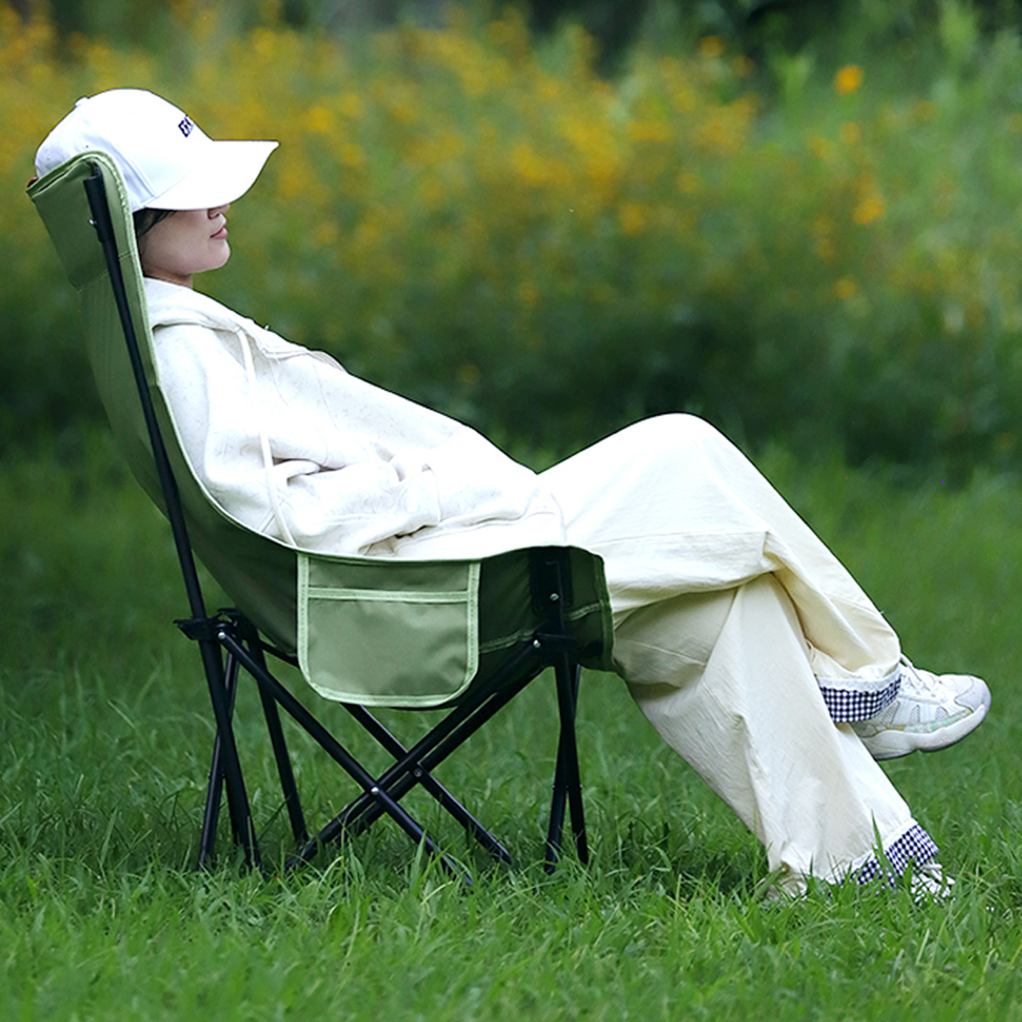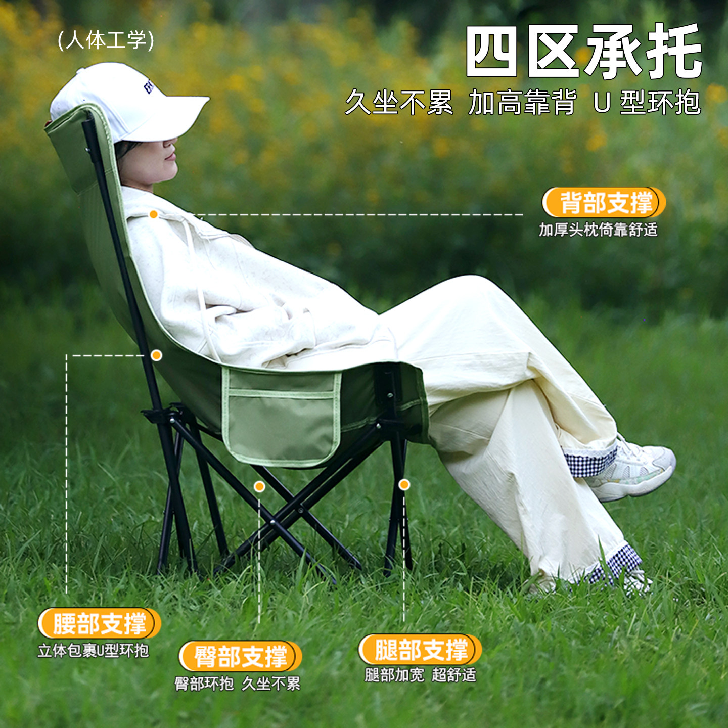 天户外折叠椅加高月亮椅露营椅子便携板凳钓鱼沙滩躺椅野餐桌椅装备