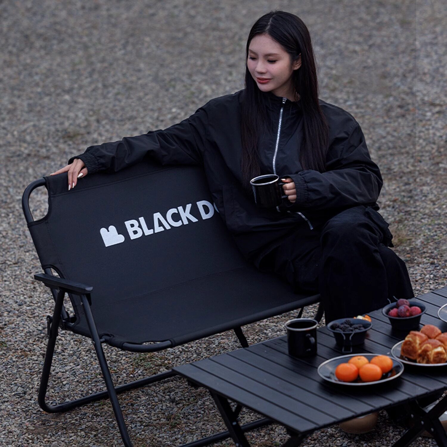 淘宝BLACKDOG黑狗露营双人椅可折叠户外沙滩室内黑化休闲椅钓鱼扶手椅