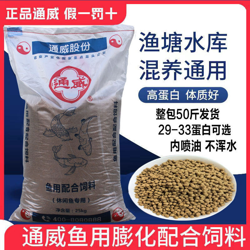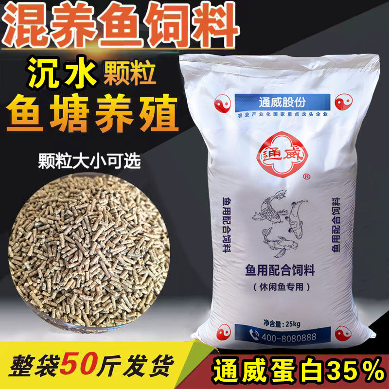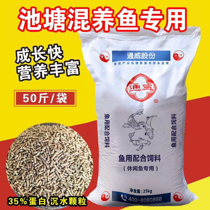 淘宝通威鱼饲料50斤下沉型草鱼鲤鱼鲫高蛋白鱼苗池塘养殖专用鱼粮鱼食