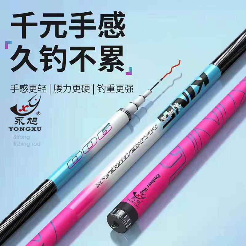 淘宝冰蓝粉钓鱼竿手竿超轻超硬19调鱼杆碳素台钓竿手杆大物竿渔具套装