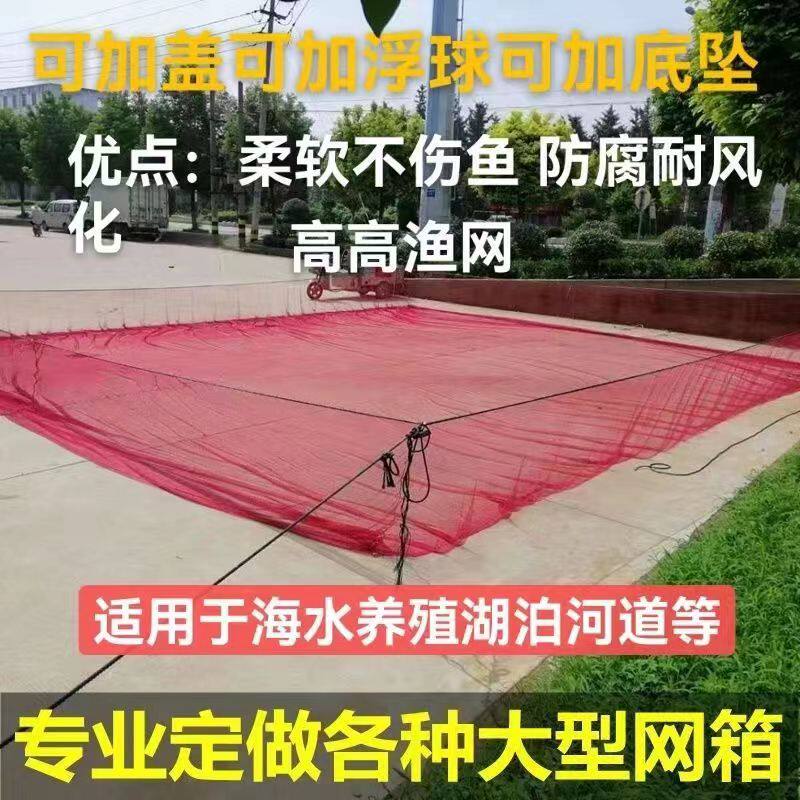 淘宝定做红色尼龙网箱养鱼水产养殖防逃网拉网鱼箱暂养存鱼大小鱼网箱