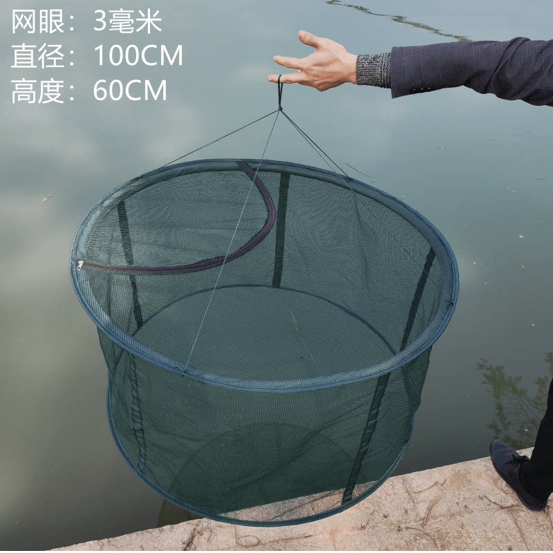 圆形开放式抽拉折叠搬网捕鱼笼渔网捕鱼网神器浮网虾网捕虾篓抬网