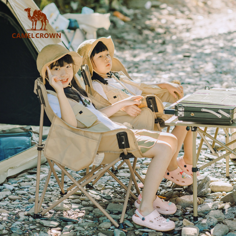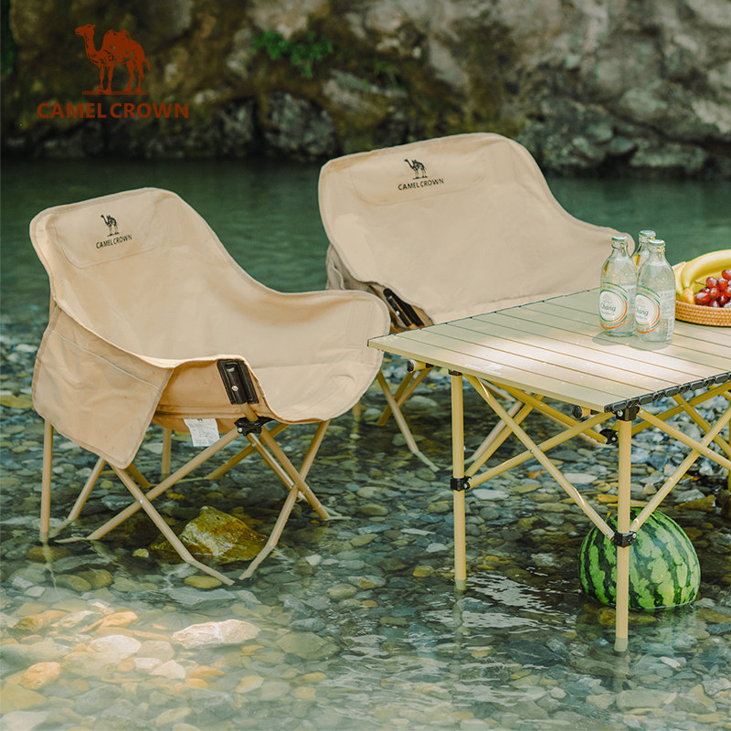 天猫骆驼户外露营椅子便携式折叠椅野餐轻量靠背钓鱼凳懒人休闲月亮椅
