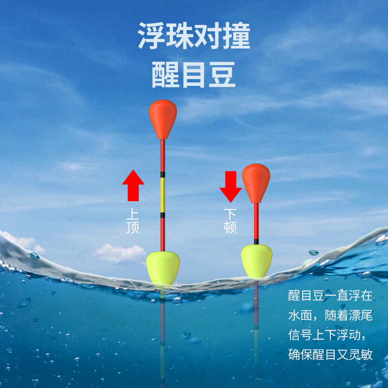 川泽浮珠对撞醒目豆浮漂,是一款专为提升垂钓灵敏度与可视性设计的高端鱼漂配件。其采用超级轻量化材质,搭配加粗漂尾设计,确保在水中稳定直立,抗风浪性能优异。独特的对撞式浮珠结构,结合醒目豆放大器,显著增强漂尾反光与对比度,即使在光线较弱或远距离作钓时,也能清晰捕捉细微鱼讯。灵敏度高,能精准传递轻口、顿口等信号,助力钓手及时提竿。适用于多种垂钓环境,是追求精细作钓体验的钓友的理想选择,兼顾实用性与视觉辨识度,提升中鱼率。