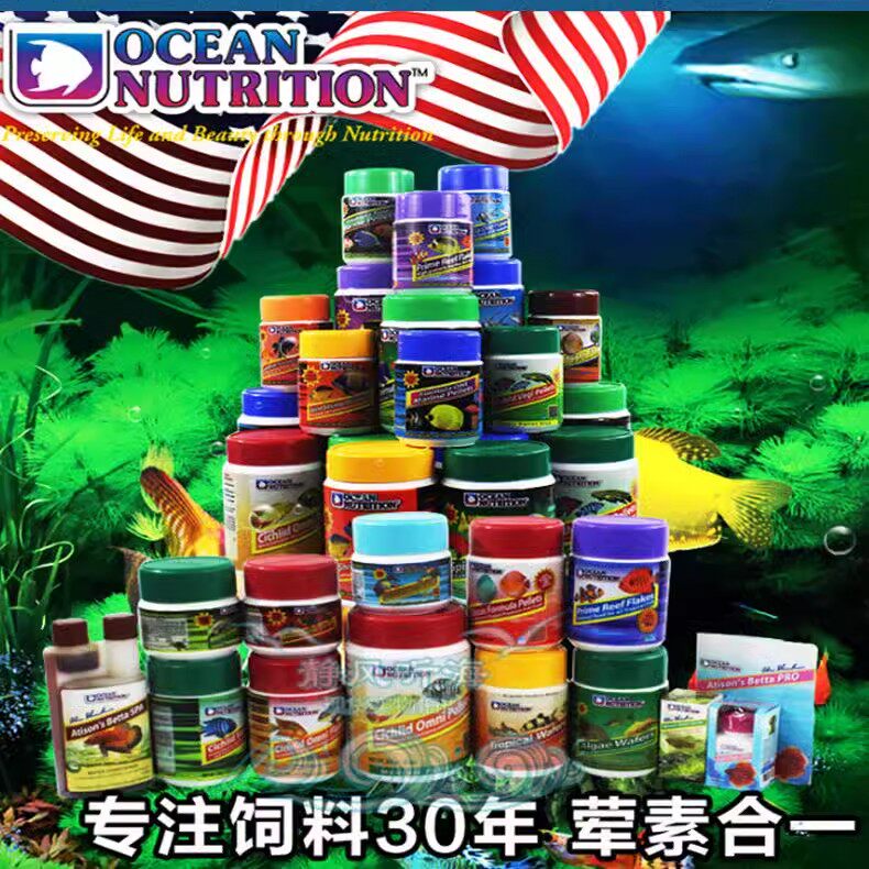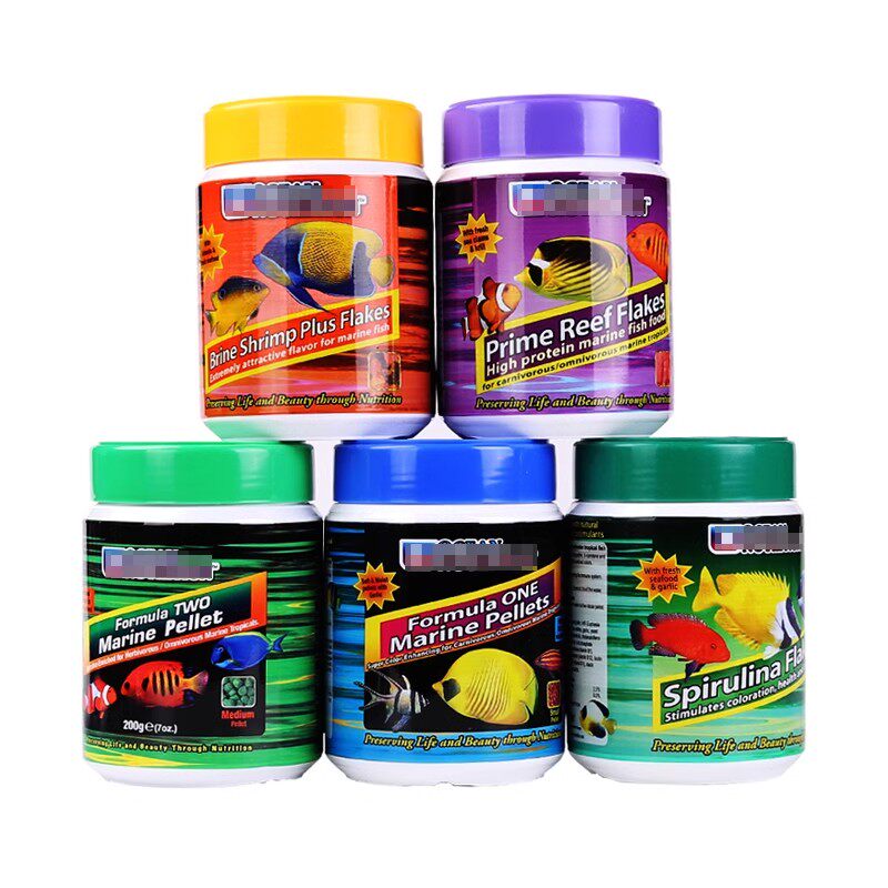 淘宝美国海洋牌鱼饲料鱼食加蒜颗粒薄片荤素食海水鱼三湖慈鲷鱼粮颗粒