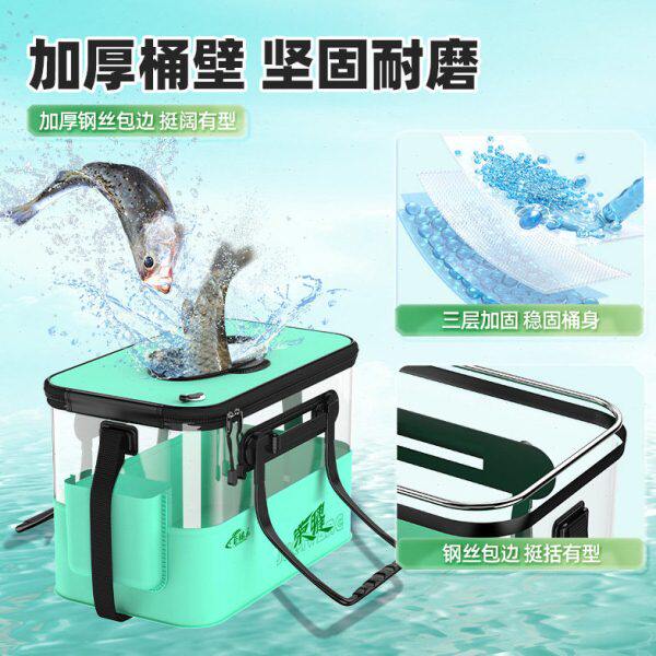 淘宝巨鳍王透明折叠活鱼桶新型钓鱼装鱼桶专用加厚活鱼箱鱼护桶钓鱼箱