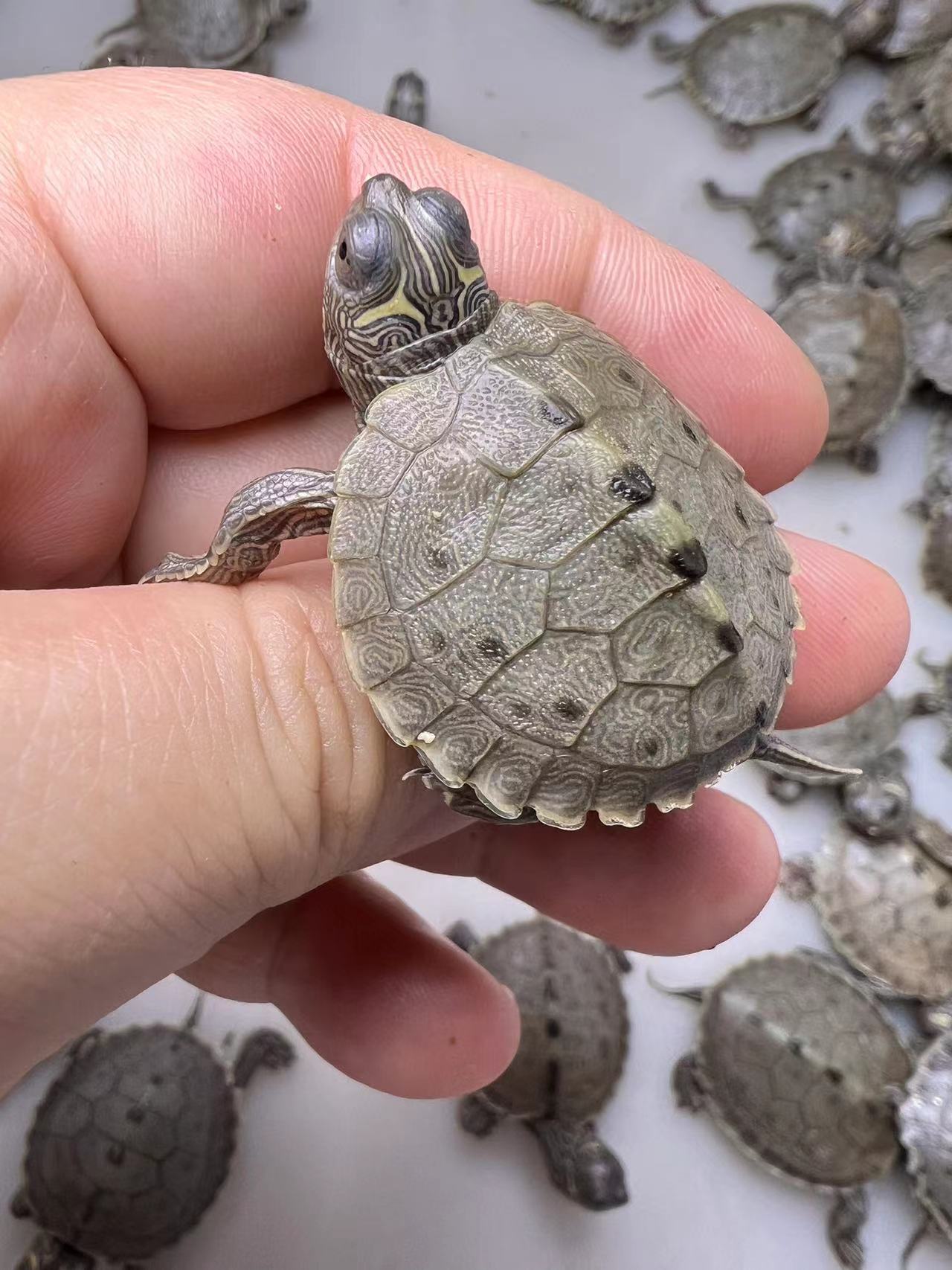 旦旦丁丁密西西比地图龟是一种冷水观赏龟,体型适中,背甲纹路清晰如地图,极具观赏价值。它适应力强,可在常温水中饲养,无需加温设备,适合与小型鱼类或同类龟混养于深水鱼缸中。该龟耐寒,冬季可自然冬眠,是新手和资深爱好者的理想选择。性格温和,杂食性,喂食方便,日常管理简单。旦旦丁丁品牌注重品质与健康,所售龟苗活力充沛、抗病力强。无论是作为宠物陪伴,还是水族造景的活体点缀,密西西比地图龟都能为家庭增添自然趣味,是兼具美观与实用性的优质冷水龟种。