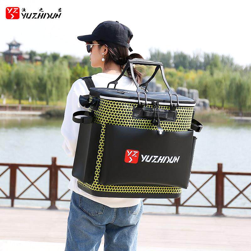 加厚折叠鱼桶鱼护桶装鱼桶钓箱钓鱼桶渔箱双肩包收纳包手提渔具包