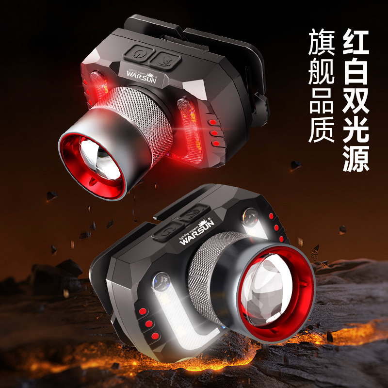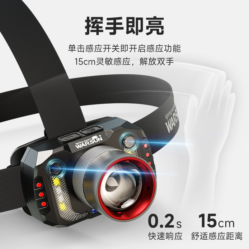 沃尔森感应头灯强光夜钓钓鱼专用充电超亮超长续航头戴式照明手电
