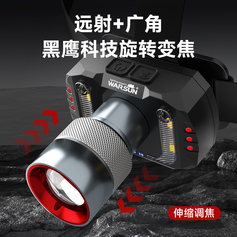 天猫沃尔森变焦头灯强光超亮超长续航钓鱼夜钓户外登山头戴式野钓照明