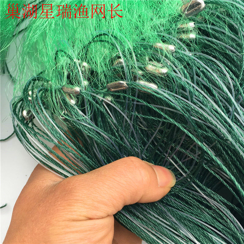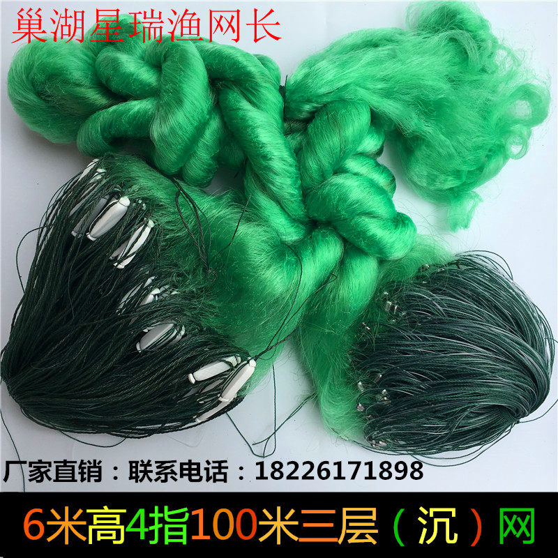 淘宝粘网丝网 捕鱼网进口绿丝4米5米6米3指7指100米三层渔网沉鲢鱼网