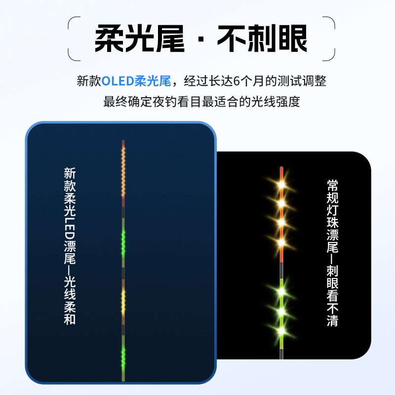 民间艺人GH二代OLED夜光漂是一款专为垂钓爱好者打造的高性能电子鱼漂,采用正品OLED显示屏,实现日夜两用一体式设计。白天清晰可见,夜晚自动点亮柔和夜光,醒目不刺眼,大幅提升咬钩识别度。高灵敏传感器能精准捕捉轻微鱼讯,反应迅速,有效减少空竿率。漂身轻盈耐用,防水防摔,适应多种水域环境。操作简便,续航持久,是夜钓与晨昏垂钓的理想选择。无论是新手还是资深钓友,GH二代OLED夜光漂都能带来更智能、更高效的垂钓体验,助您轻松掌控每一次咬钩瞬间。