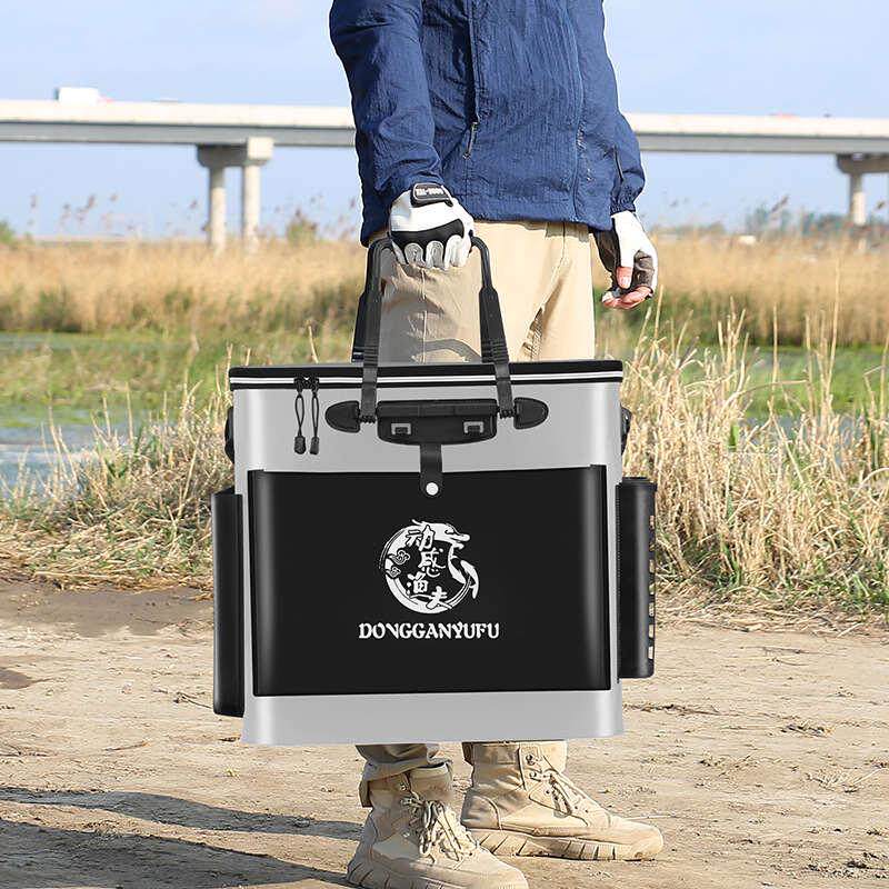 淘宝折叠鱼护桶插杆大前兜装鱼桶箱多功能钓鱼桶大容量装鱼桶