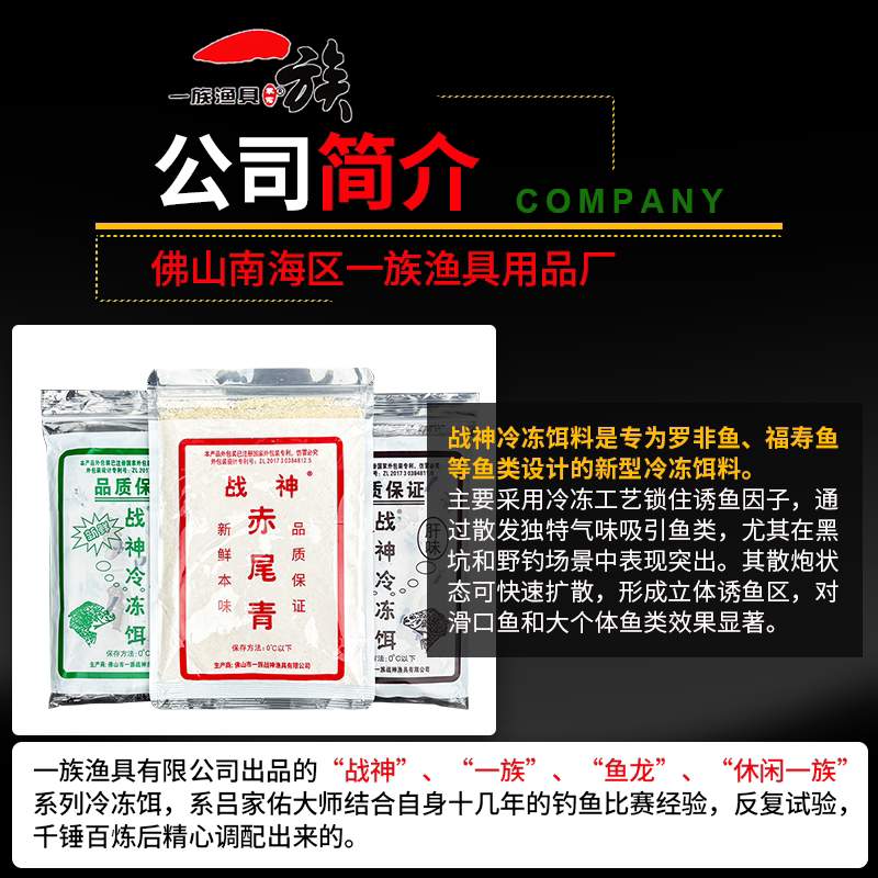 【正品批发】一族战神冷冻饵罗非冻料,专为台钓罗非鱼设计,采用优质原料科学配比,富含高蛋白诱鱼成分,腥味浓郁、穿透力强,有效提升咬钩率。产品经低温冷冻工艺处理,保鲜持久,开袋即用,使用方便。发货采用加厚泡沫箱+冰袋双重保鲜,确保饵料全程冷链运输,品质如初。适用于池塘、水库等多种水域,是钓友征战罗非的得力助手。支持批量采购,价格优惠,正品保障,欢迎垂钓爱好者及渔具店洽谈合作,助力爆护丰收!