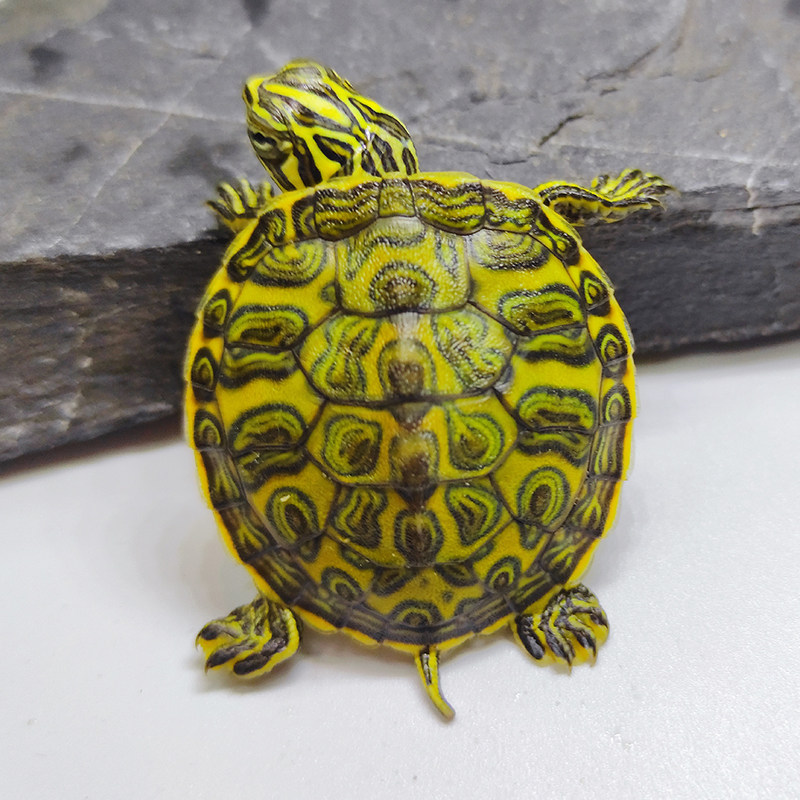 纯种精品宽纹火焰龟(又称红腹龟或黄腹火焰龟)是一种观赏性极强的冷水龟类,适宜在常温淡水中饲养。其幼体背部具鲜明宽条纹,腹甲呈鲜艳红色或黄色,色彩斑斓,极具观赏价值。该品种属杂食性偏素食,成体后可大量摄食水生植物、蔬菜瓜果等,被誉为“深海吃素龟”或“素食龟”,部分个体甚至能清理水体中的残渣与排泄物,有“吃粪龟”之称,有助于维持水质清洁。适合深水环境饲养,抗病力强,适应低温,是新手和资深龟友的理想选择。注意提供晒背台与均衡饮食,可健康生长多年。