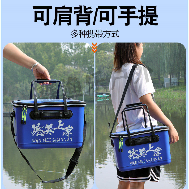 加厚折叠鱼桶鱼护桶装鱼桶钓箱钓鱼桶渔箱双肩包收纳包手提渔具包
