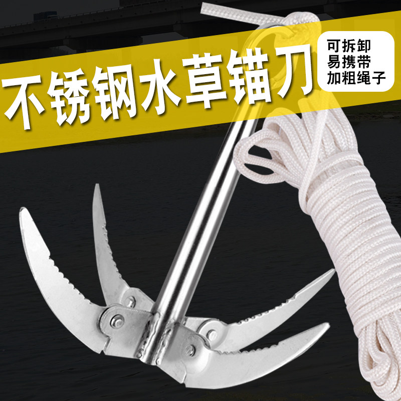 淘宝水云川不锈钢钓鱼水草锚刀捞除拉草器搂草耙子抓草钩水草刀工具
